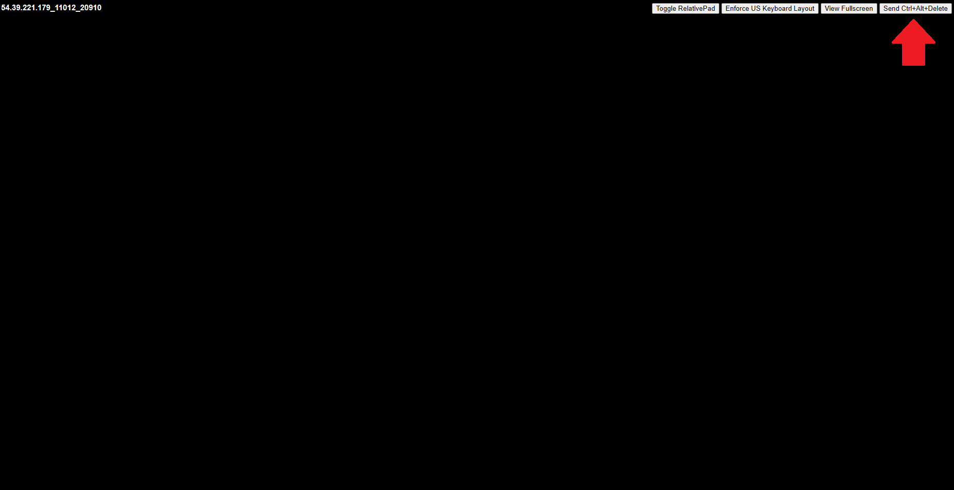 É possível que inicialmente seja apresentada uma tela preta com algumas informações em destaque. Para prosseguir com o acesso, clique no botão que exibe a mensagem "Send Ctrl + Alt + Delete". Isso lhe permitirá inserir a senha de seu servidor e assim, obter acesso total ao ambiente.